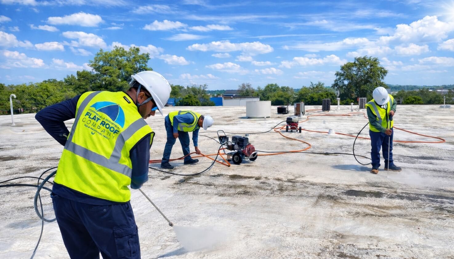 For over 30 years, Commercial Flat Roof Company has been a trusted provider of commercial roofing restoration services as part of our broader commercial roofing services for aging roof systems. Our proven restoration process helps commercial property owners avoid the cost and disruption of full roof replacement while extending the service life of their existing roof and protecting their long-term investment.